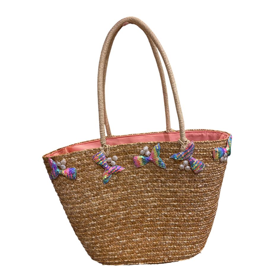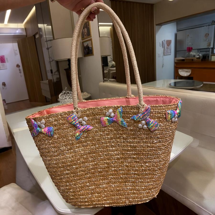 Apresentamos esta deslumbrante bolsa de praia em palha natural, perfeita para seus momentos de lazer ao ar livre. O design artesanal apresenta um trançado tradicional em palha dourada, complementado por um encantador detalhe de fundo de mar multicoloridos com tons de arco-íris e pequenos detalhes perolados que adornam a parte superior da bolsa. O interior é finalizado com um elegante forro, oferecendo proteção adicional para seus pertences. As alças longas e reforçadas garantem conforto ao transportar, seja na praia, piscina ou passeios casuais. O estilo tote espaçoso acomoda facilmente seus itens essenciais, desde toalhas e protetor solar até seus acessórios pessoais. Esta bolsa combina perfeitamente a funcionalidade com um toque lúdico e feminino, sendo uma escolha versátil para complementar seus looks de verão.
