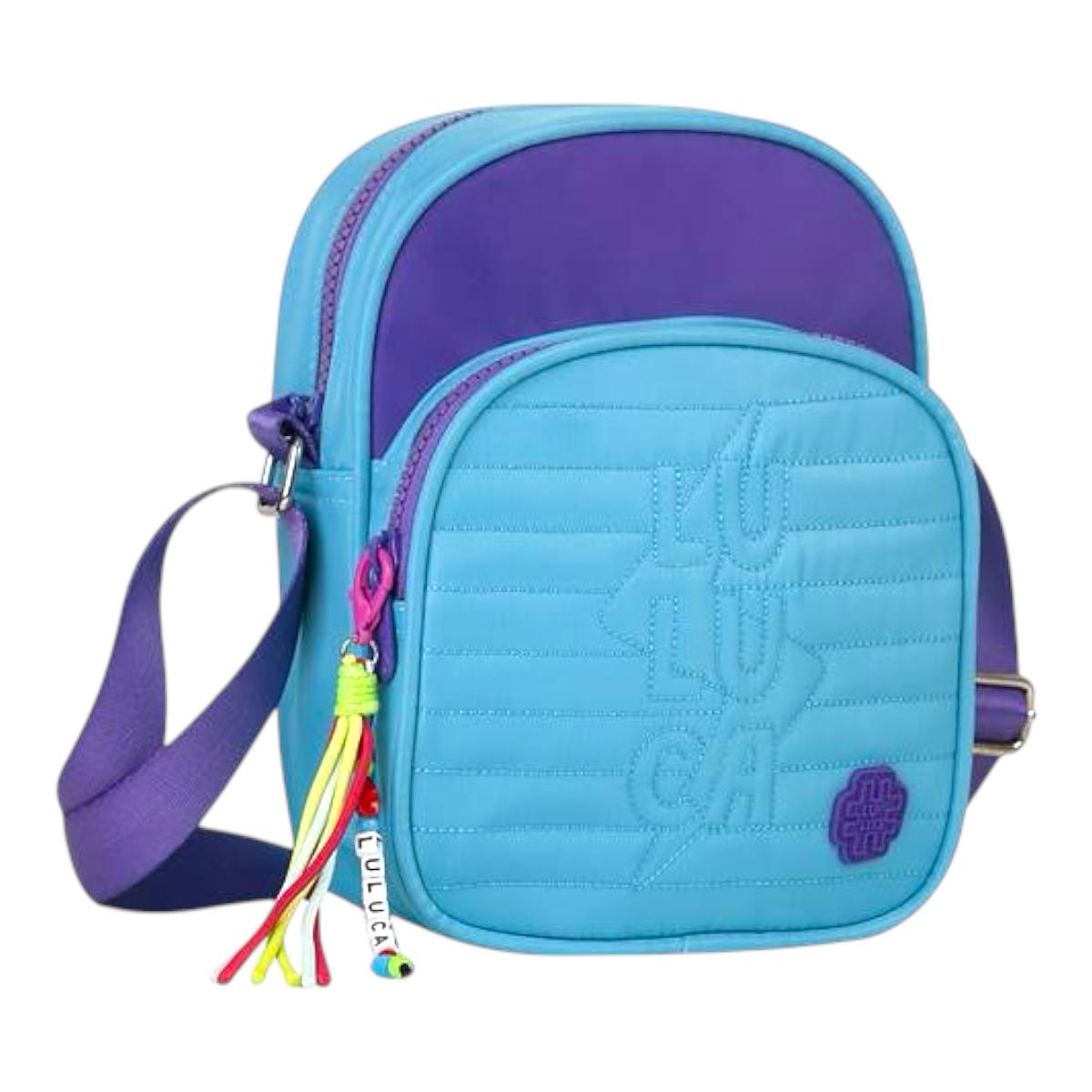 Bolsa Feminina Transversal Luluca Azul Turquesa detalhe em Roxo