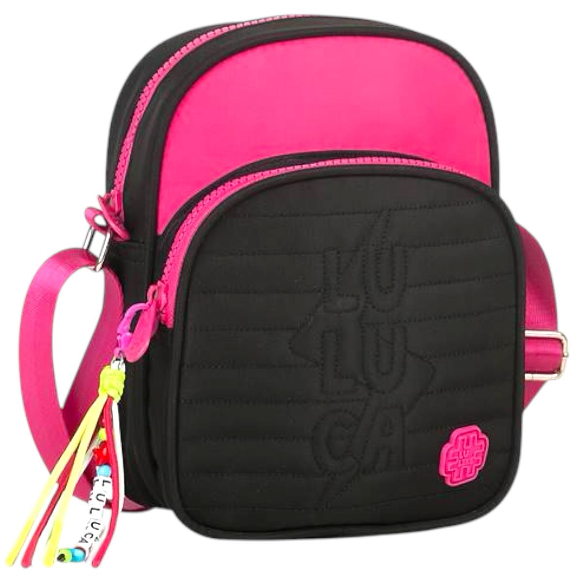 Bolsa Feminina Transversal Luluca Preta com Detalhe Rosa