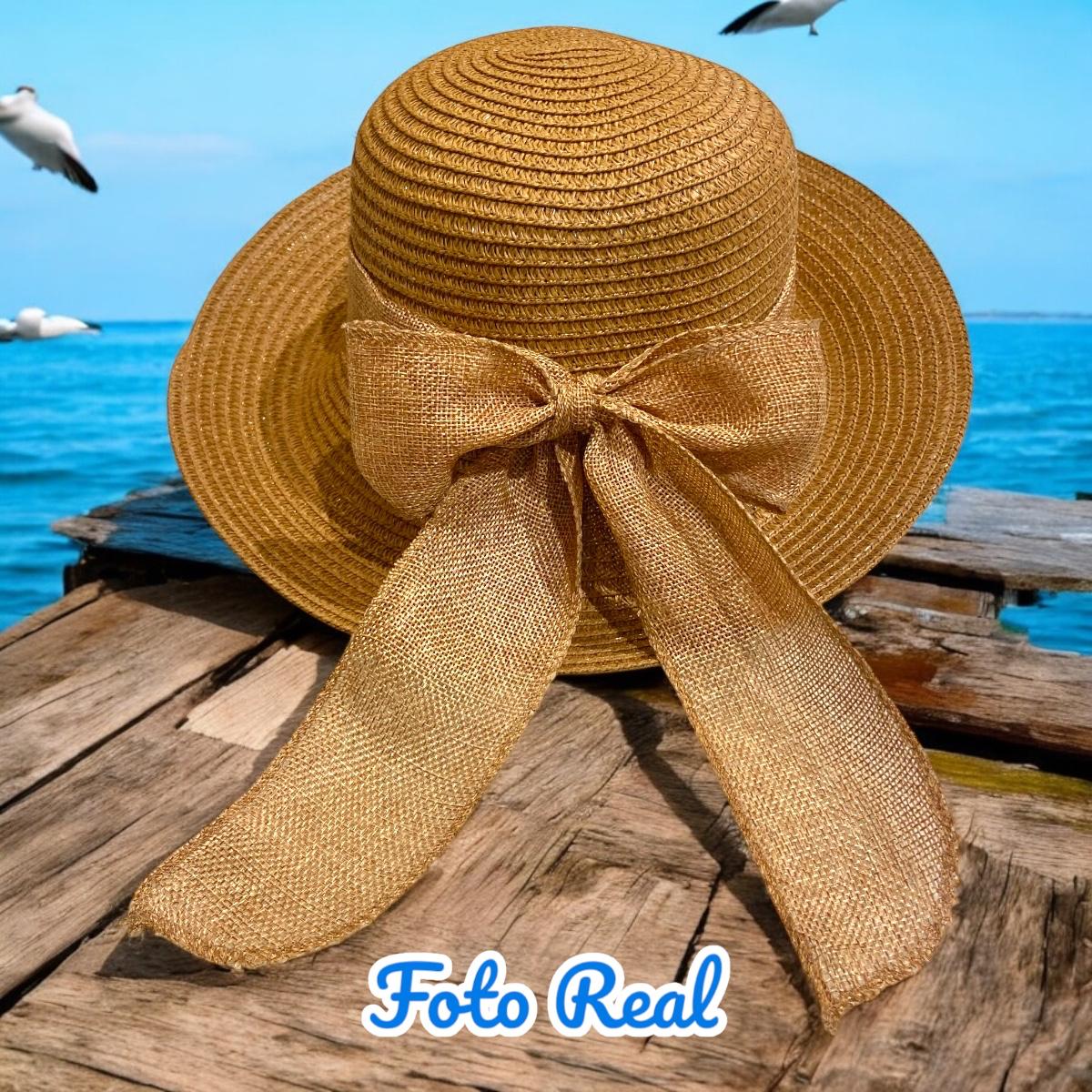 Chapéu de Palha Sintética Feminino Dobrável com Laço Decorativo, Estilo Clássico