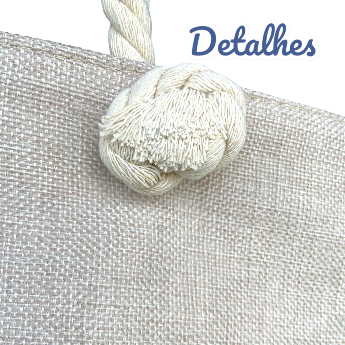 Conjunto elegante de praia com estampa em tons de azul, composto por uma canga e uma bolsa coordenada. A canga apresenta um design boho chique com padrões circulares inspirados em mandalas e elementos decorativos em azul royal, turquesa e branco, finalizada com franjas brancas nas extremidades. A bolsa de praia, confeccionada em tecido bege resistente, possui alças de corda trançada e é decorada com um medalhão circular em paetês azuis brilhantes. O conjunto é perfeito para dias de praia ou piscina, combinando estilo e funcionalidade. A canga é versátil, podendo ser usada como saída de praia, pareô ou mesmo toalha de praia. A bolsa espaçosa é ideal para carregar seus pertences de praia com estilo. As cores vibrantes e o design único tornam este conjunto um acessório indispensável para seu guarda-roupa de verão.