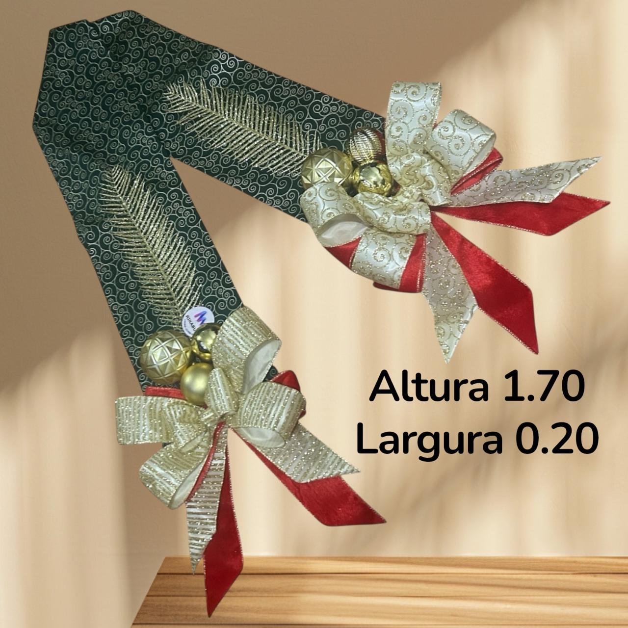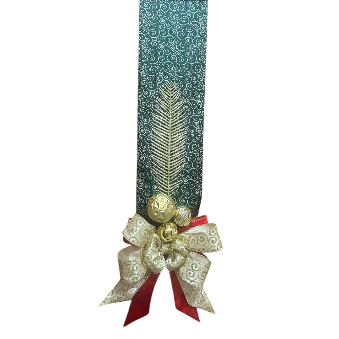 Transforme sua decoração natalina com este elegante escapulário decorativo RIKABUNI. Confeccionado artesanalmente com tecido verde nobre adornado com delicados padrões em espiral e belas folhas douradas, este enfeite traz um toque de sofisticação ao seu ambiente. Os laços luxuosos nas extremidades combinam fitas de veludo vermelho e fitas decorativas em tom champanhe com acabamento brilhante, complementados por pequenas bolas douradas natalinas. Perfeito para decorar portas, paredes ou qualquer espaço que precise de um toque festivo. O design tradicional com cores clássicas do Natal cria uma atmosfera acolhedora e festiva em sua casa. Cada detalhe foi cuidadosamente elaborado para garantir um acabamento premium que resistirá a várias temporadas natalinas. Ideal para quem busca uma decoração sofisticada e duradoura para as festas de fim de ano.