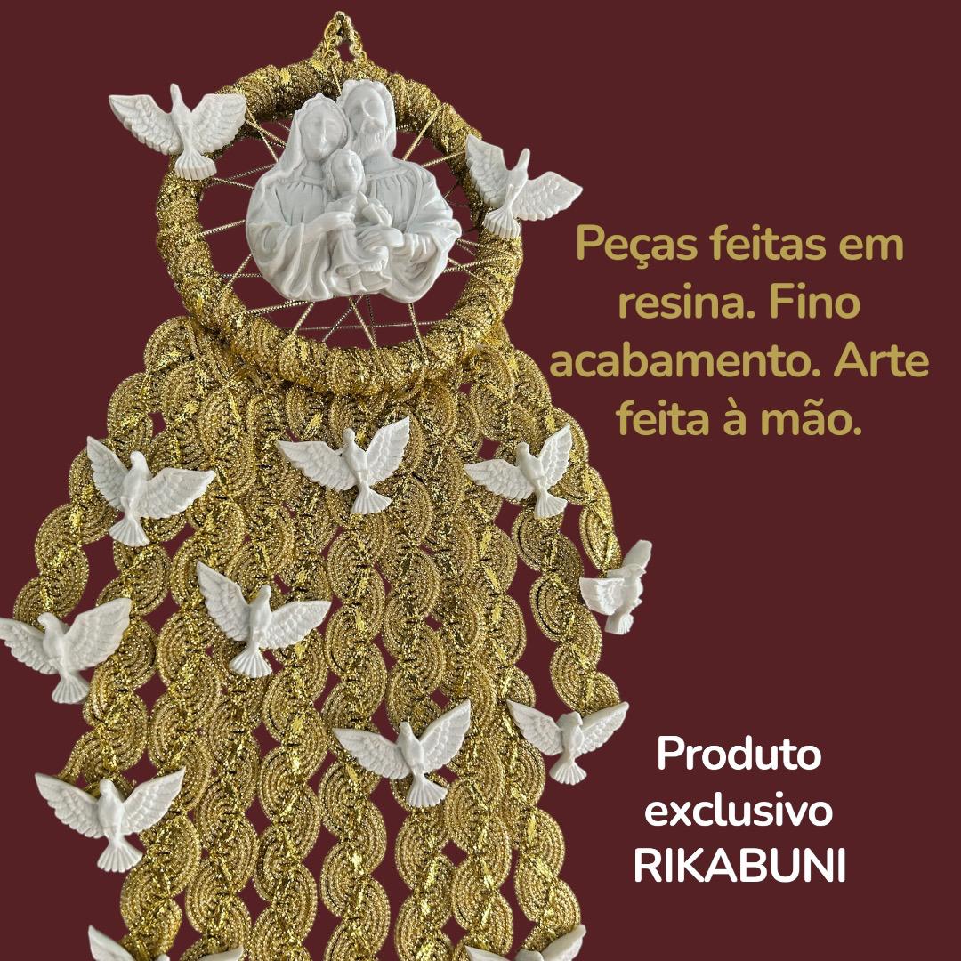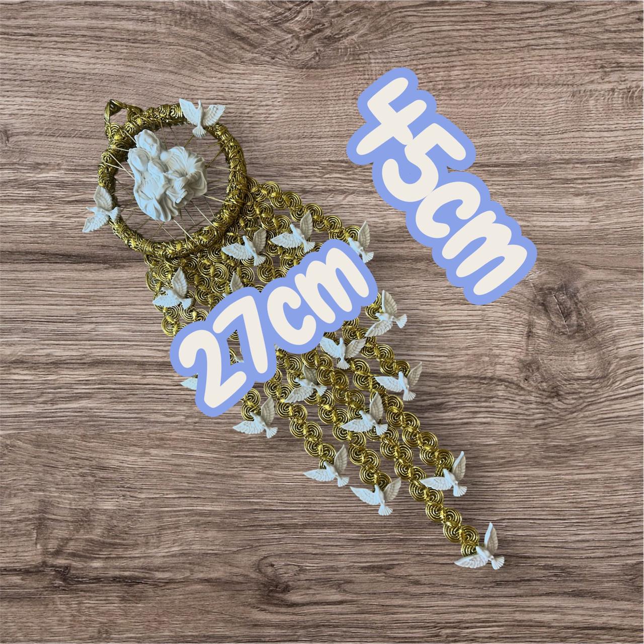 Escapulário Enfeite de Porta Espírito Santo e Sagrada Família Dourado Católico 45x27cm