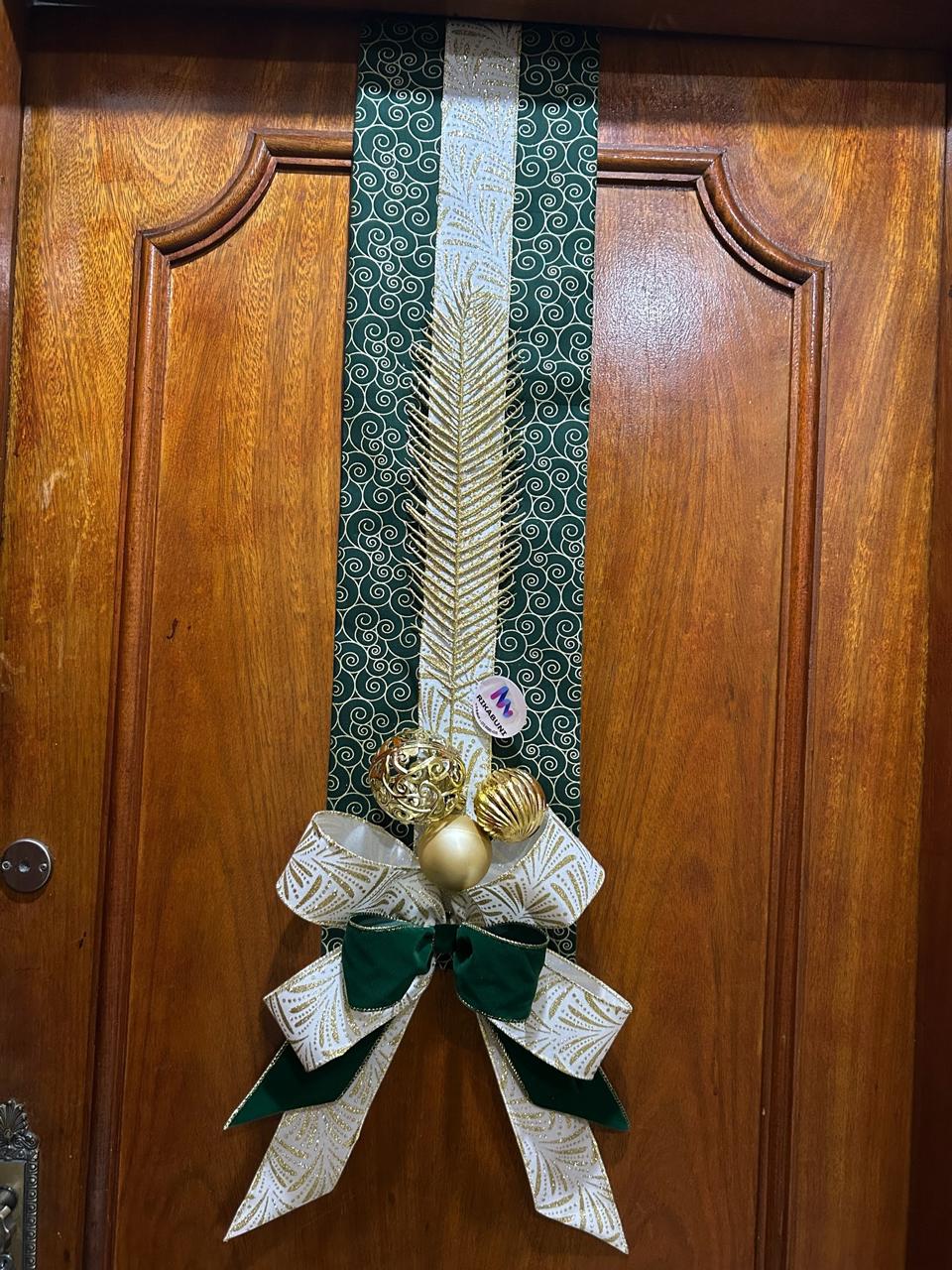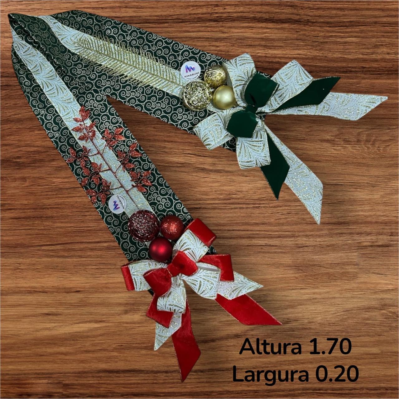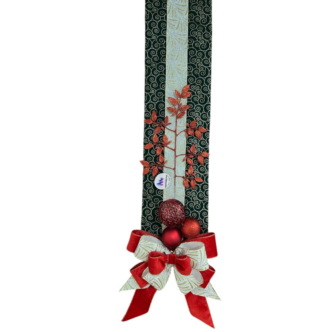 Transforme sua decoração natalina com este luxuoso escapulário verde da RIKABUNI. Confeccionado em tecido premium de alta qualidade, este ornamento pendente apresenta um design sofisticado com laços em veludo que adicionam um toque de elegância. O que torna esta peça verdadeiramente especial é a decoração única em cada extremidade - uma ponta é decorada com bolas douradas e a outra com bolas vermelhas, criando um contraste deslumbrante. O padrão em espiral dourado no fundo verde escuro adiciona profundidade e sofisticação ao design. Os laços em veludo, em verde e vermelho, complementam perfeitamente a estética festiva, enquanto as bolas natalinas cuidadosamente posicionadas proporcionam um acabamento luxuoso. Este escapulário é perfeito para decorar portas, janelas ou qualquer espaço que precise de um toque natalino elegante e diferenciado.