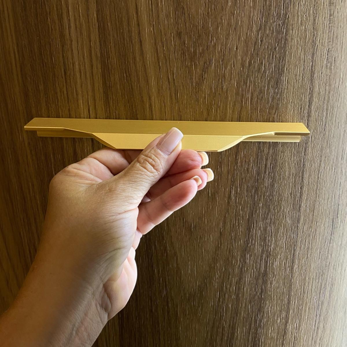 Kit 4 Peças Perfil Puxador Slim Alumínio Para Móveis 20 cm Cor Dourada -RIKABUNI