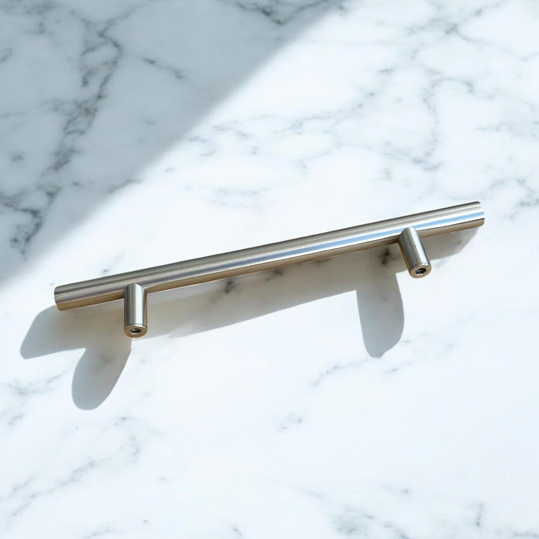 DESIGN MINIMALISTA: Puxadores elegantes em aço inoxidável com acabamento prata, proporcionando um visual moderno e sofisticado para seus móveis.