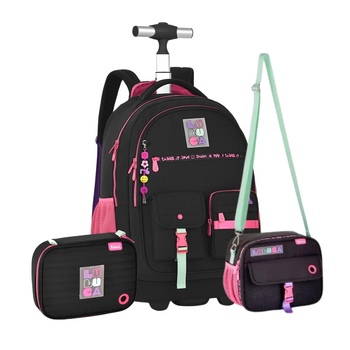 Kit Mochila Estojo E Lancheira Luluca Rodinhas Oficial 2025